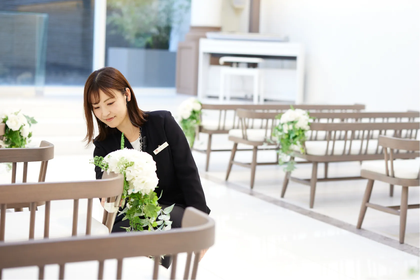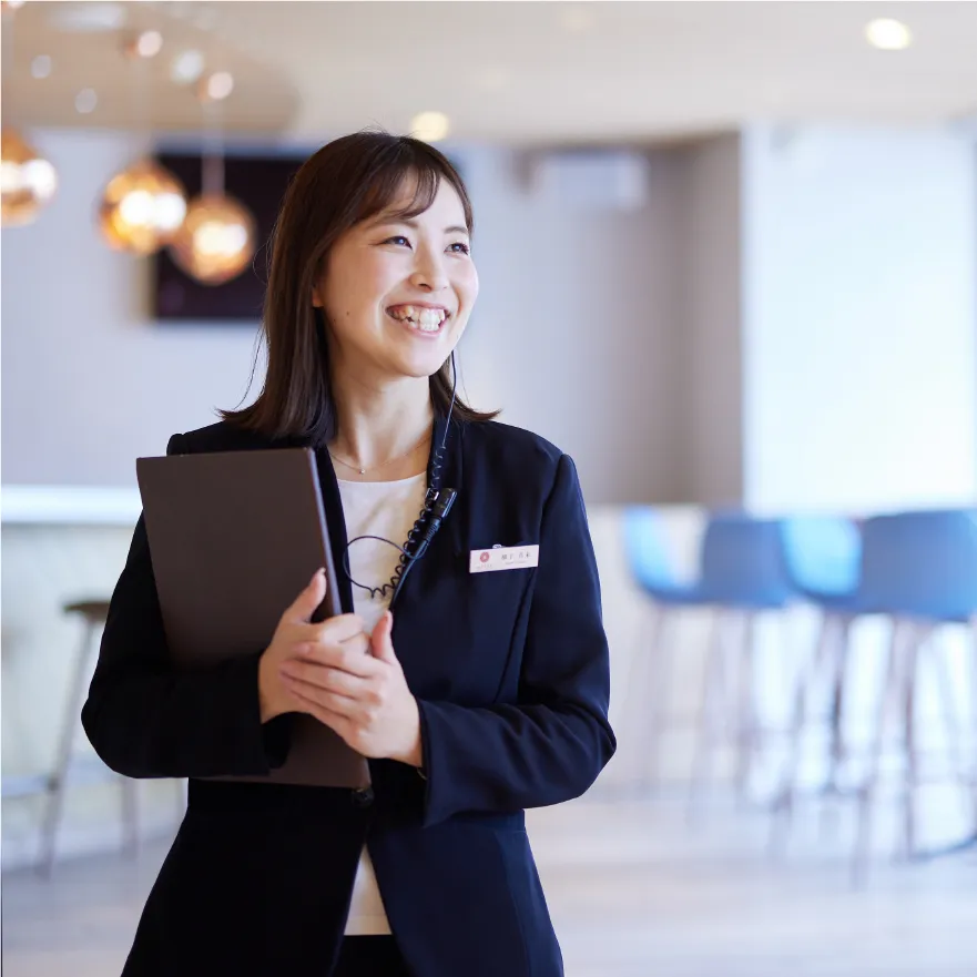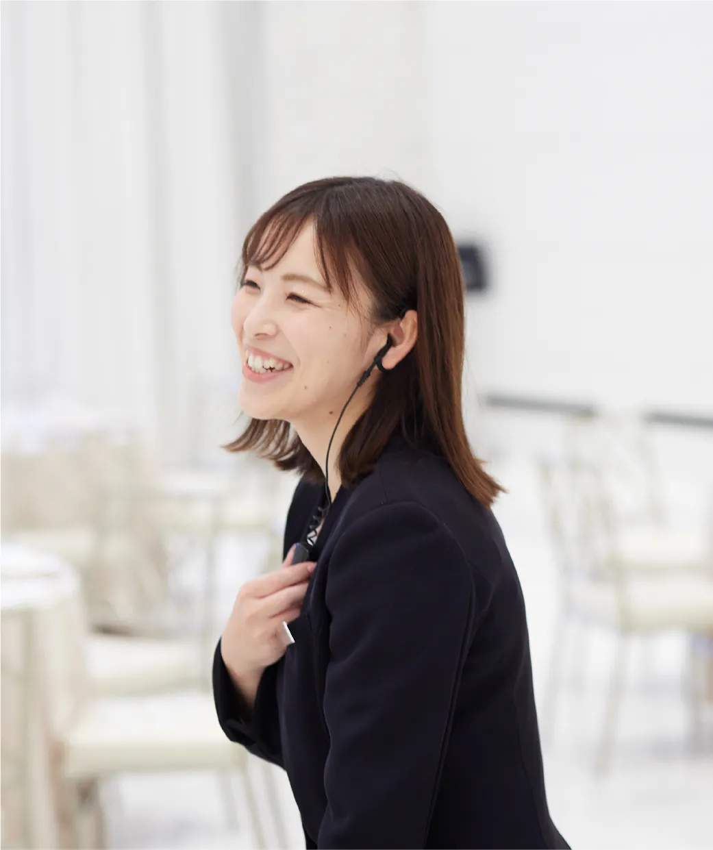 もともと人と関わることや、イベントを企画することが好きだった私は、漠然とウエディングプロデューサーという仕事に憧れを持っていました。しかし、最初のキャリアに選んだのは、新幹線や観光列車の客室乗務員。その後は不動産会社で事務も経験しました。それなりにやりがいはあるけど、どこか物足りない。そんなモヤモヤを抱えていたところ、「一度しかない人生、思い切ってウエディングの世界に飛び込んでみたら」と友人に勧められ、転職を決意。当初は経理担当だったものの、先輩の接客フォローや結婚式の見学を重ねる中で、プロデューサーへの想いが強くなり、入社半年でキャリアチェンジが叶い、晴れてウエディングプロデューサーになることができました。5年間の実務経験を経て、プロデューサーとしてさらなる成長を求め、ディアーズ・ブレインへの入社を決意しました。決め手になったのは、スマイル(結婚式)への熱い想いを感じたから。大好きなスマイルにとことん向き合おうと、入社後は年間40組以上を担当する目標を掲げました。途中で店舗異動もありましたが、2つの式場を経験することができ、目標数を超えるお客様の担当をすることができました。