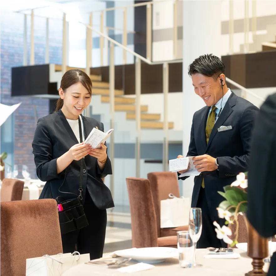 「人を喜ばせる仕事がしたい」。いつからかそう思うようになり、ブライダルの専門学校へ進みました。別の接客業でも、お客様を喜ばせることはできるかもしれません。けれども、ウエディングプランナーなら、「森國楓恋」という名前を覚えてもらえる。そんな仕事は他にないと思ったんです。数あるブライダル企業の中でも、プラネットワークを選んだ理由は「楽しくなければ、やったところで知れたもの」という代表の言葉に共感したこと、そして私達の代が新卒2期生の募集だったことです。長年スポーツをやってきたからこそ、やるからにはなんでも「1番」を目指したい。前例が少ない環境で「初めて」を自分で形にしていく、そんな挑戦ができることに魅力を感じました。ただ、入社直後は順風満帆ではありませんでした。分からないことだらけで戸惑い、先輩や上司にお叱りをいただくことも。ときには自分の意見を曲げられず衝突することもありました。それでも続けられたのは、負けず嫌いな性格と「ここで終わったら悔しい」という思いがあったから。そして何より大きかったのは、忙しい中でも必ず時間を割いて向き合ってくれる先輩や上司の存在でした。誰よりも接客のロールプレイングに時間を費やし、上司や先輩方に何度も練習を見てもらいました。プラネットワークには、経験豊富でそれぞれに得意分野を持つ先輩たちがいて、誰に聞いても惜しみなく知識を共有してくれる。少数精鋭だからこそ、一人ひとりの距離が近く、密度の濃い学びを得られたのだと思います。