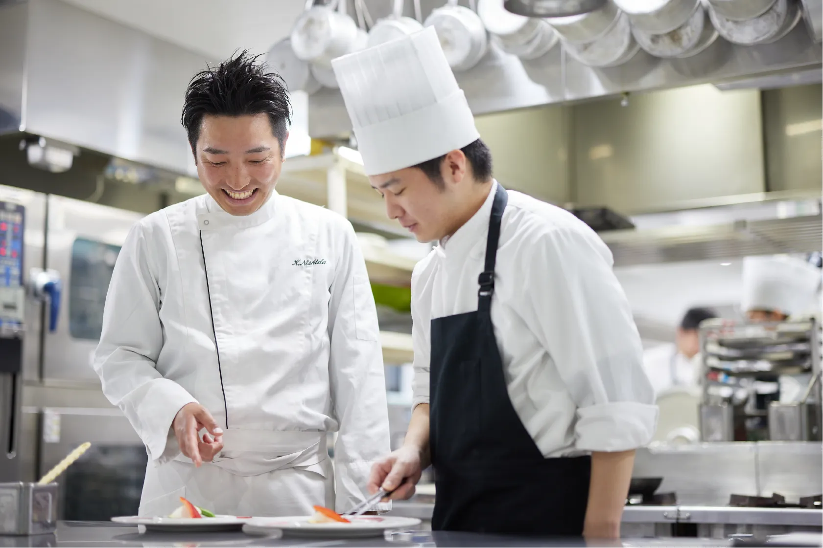 学生時代、地元にあるディアーズ・ブレインの店舗が「婚礼料理が美味しいらしい」と評判になっているのを耳にし、強く興味を抱きました。当時は新卒採用を行っていませんでしたが、「どうしてもここで働きたい」という想いを諦めきれず、アルバイトとして入社したのがキャリアの始まりです。入社して十数年が経った現在は、店舗運営を任される立場になりました。責任者として業績目標を達成するには、原価を抑えることや高単価の料理を受注することも必要です。しかし、それ以上に重視しているのは、食べた方が心から喜んでくれているかどうか。そのために、お客様の声をいかに料理に反映させるかを常に考えています。たとえば、お肉のサイズや硬さといった細かな点も、実際にいただいた感想をもとに微調整を続けてきました。現在勤務する店舗では、オープン以来、料理のお客様満足度 が10%近く向上するという成果が出ており、そういった小さな積み重ねが業績にも確かに結びついていると感じています。また、料理の質や満足度を高めるには、一人の発想や技術だけに頼るのではなく、チーム全体で議論し、改善を繰り返すことが欠かせません。キャスト一人ひとりが「どうすればもっと良くできるか」を考え、自分の領域を広げていく。そうした取り組みが、キャストのスキル向上にもつながっていきます。そして、その成長の姿に立ち会えることが、私にとって大きなやりがいです。