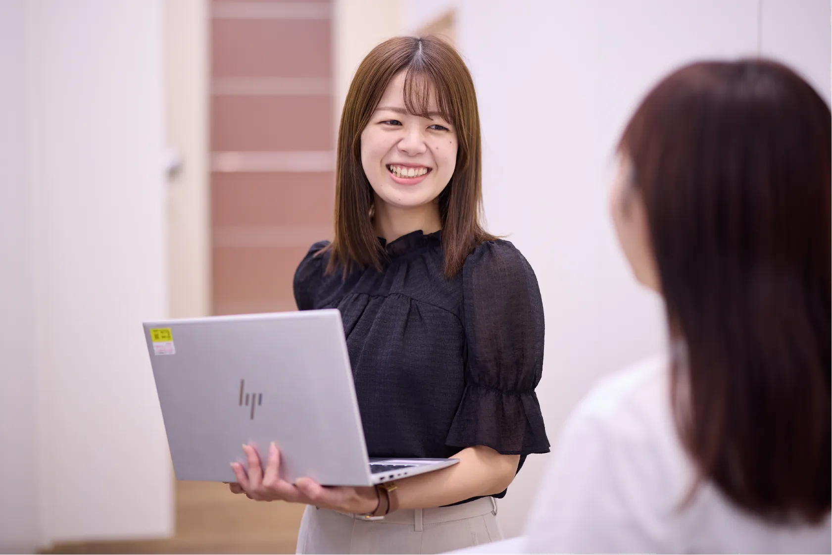 学生時代から「おもてなし」に関連する仕事に関心があり、就職活動ではブライダルやホテル業界を志望していました。挑戦を楽しむ雰囲気に魅力を感じて、第一志望だったのはディアーズ・ブレイン。しかし当時はご縁がなく、とあるホテル会社に就職し、フロント業務や電話オペレーター業務を担当しました。入社から4年ほど経ったころ、「新しいことに挑戦したい」と考え転職活動を開始し、そのとき目にとまったのが、ワンダーステージの募集でした。ワンダーステージは、結婚式費用の立替払い(ブライダルローン)をはじめ、新生活のサポートや保険事業を手がける会社で、新郎様新婦様の結婚式からその後の生活まで「お金」の面で支える役割を担っています。学生時代に、「一番働きたい!」と思っていた会社のグループ会社。ここで踏みださなければ後悔すると感じ、応募を決意しました。もちろん「金融知識のない自分に務まるのだろうか」という不安もありました。しかし面接で、後に上司となる方から「知識は入社後で十分。大切なのは素直さと感受性」と言っていただき、安心することができました。さらに「私たちが向き合うのは企業ではなく個人のお客様。誠意を持って関係を築くことが大事だ」という話を聞き、金融に抱いていた堅いイメージが、人に寄り添う温かいものへと変わっていきました。入社後は、会社やクレジット業界の基本知識を学び、パソコン入力などの簡単な業務からスタート。その後、お客様の電話対応、審査業務と少しずつ担当領域を広げていきました。覚えることは多く正確さも求められる仕事ですが、OJTを通じて着実に力をつけながら成長することができている と感じています。